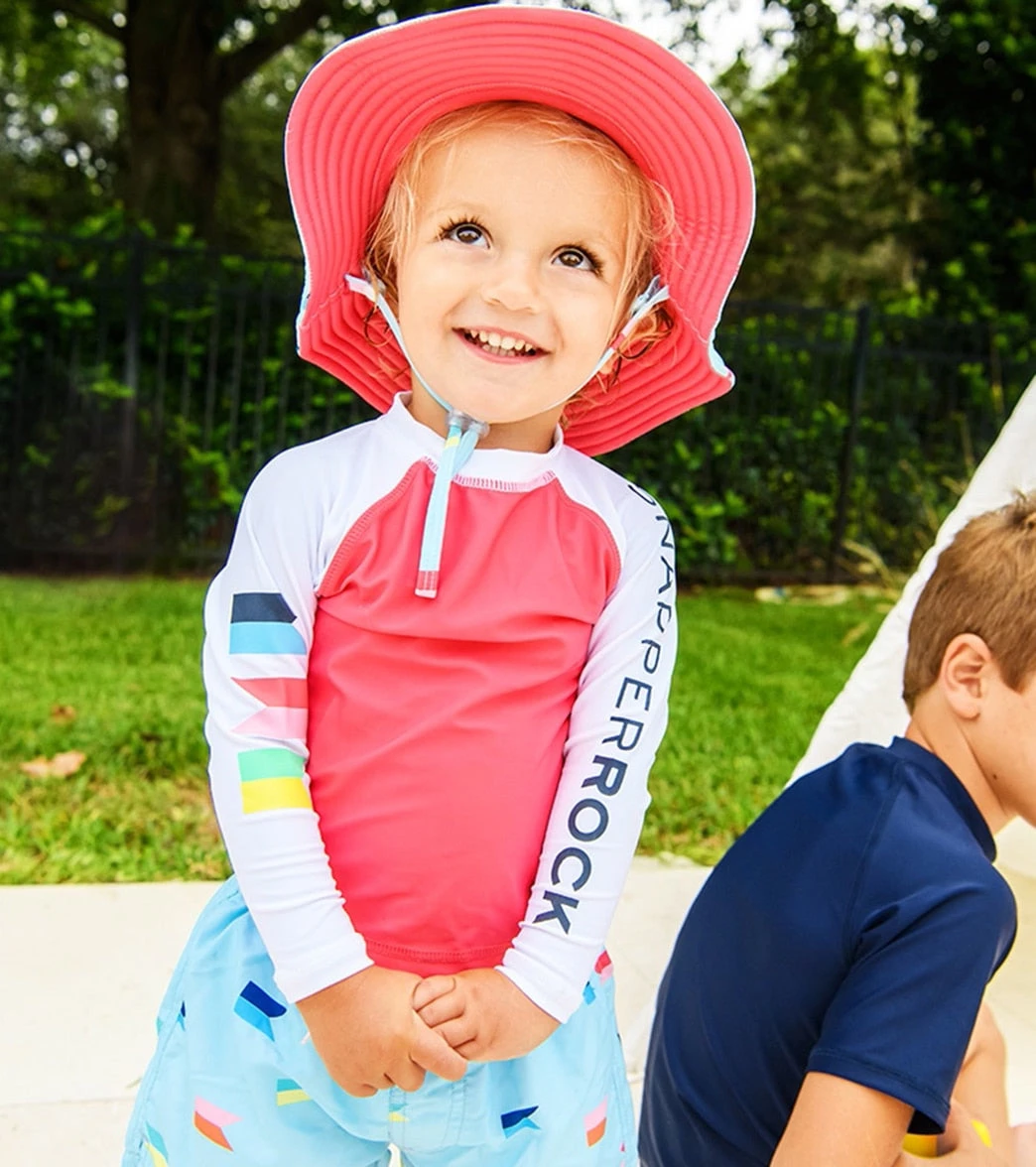 Keep your baby’s face protected from the sun in the Snapper Rock Boys’ Maritime Fliers Reversible Bucket Hat.