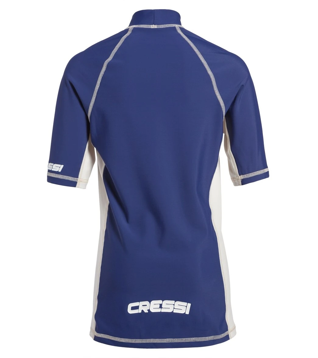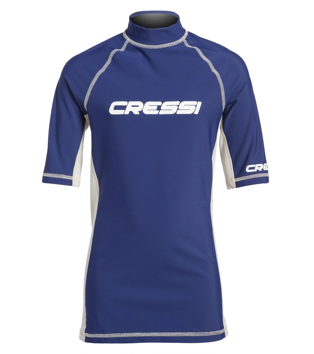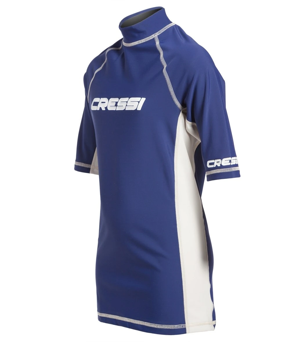 Keep him covered with comfortable Cressi Boys’ Classic Short Sleeve Rashguard. This swim shirt features a high-neck design and short sleeves for comfort in additional to UPF 50+ sun protection for all-day coverage.