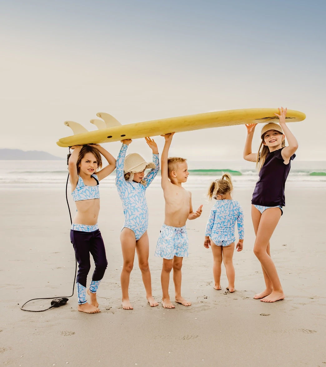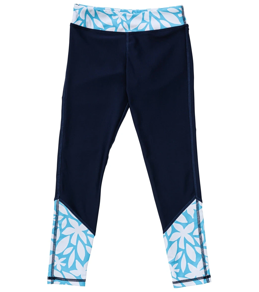 For the ultimate in sun protection, The Aqua Blooms Swim Leggings are great for those long days at the beach. Featuring an Aqua Blooms print leg cuff and waistband and in a flattering navy colThe.Ideal for Stand Up Paddleboarding, surfing and snorkelling.