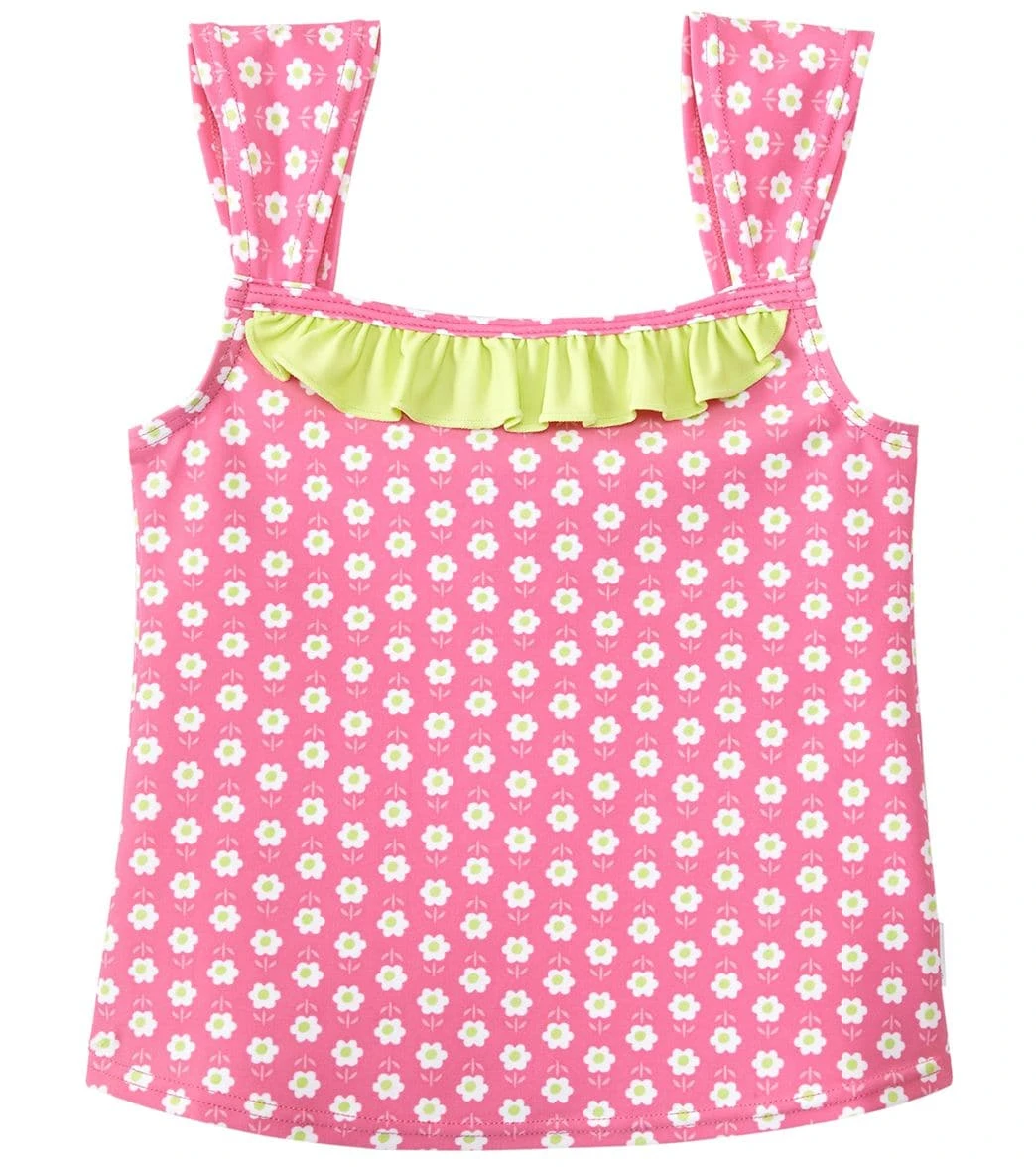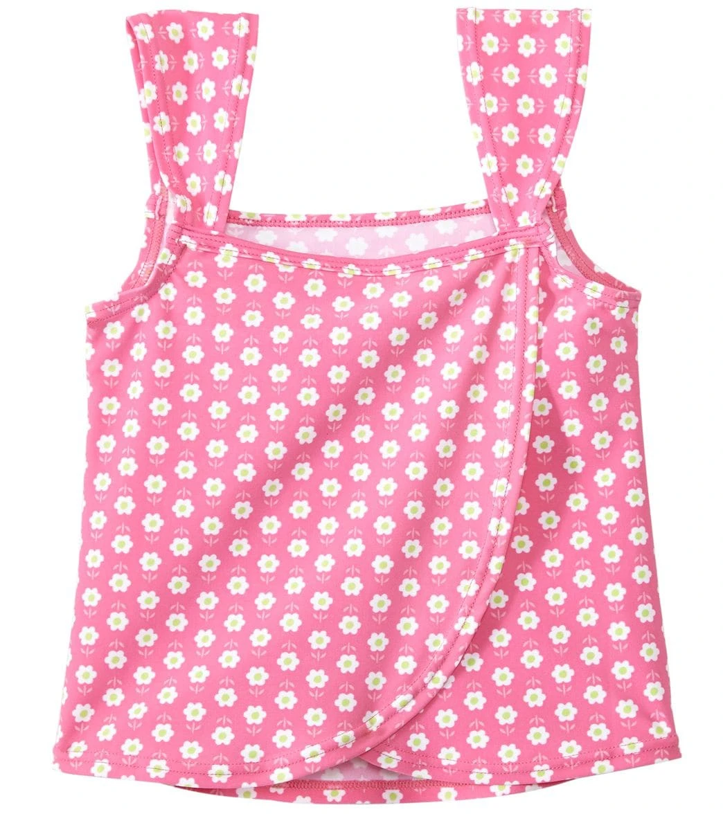 Swim in classic summer style year-round. The iPlay Girls’ Classic Ruffle Swimsuit Top features a lovely print and wide, secure straps for optimal comfort and style. The comfortable fit provides excellent coverage throughout the day.
