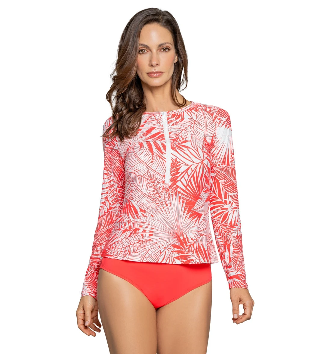 The Jantzen Women’s Garden Euphoria Rosie Rash Guard is the perfect addition to your swimsuit collection. This rashguard adds additional sun protection with long sleeves and half zip front. UPF50 swim fabric which is quick dry and can be worn in the water over your swimsuit top or in place of it.