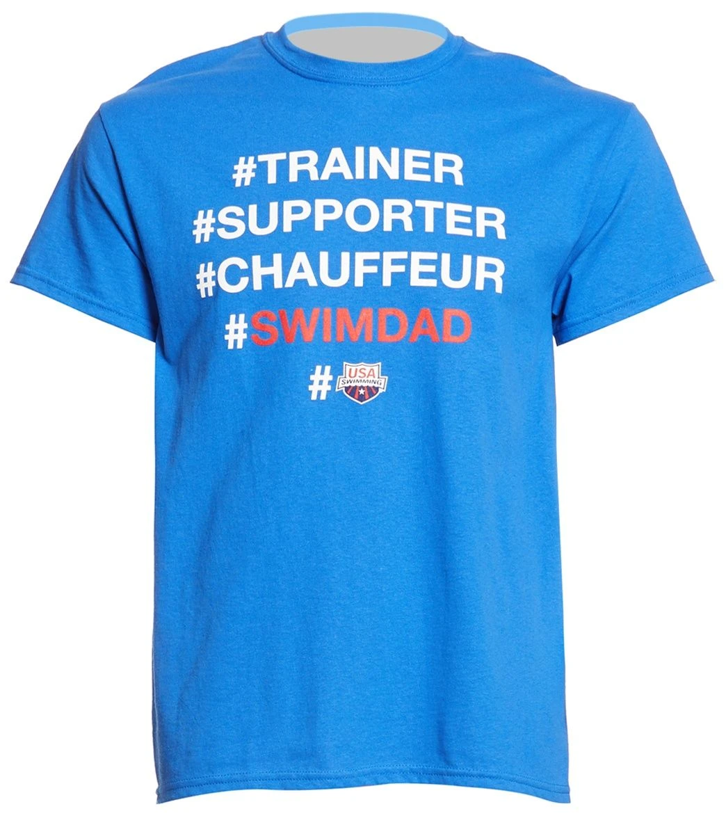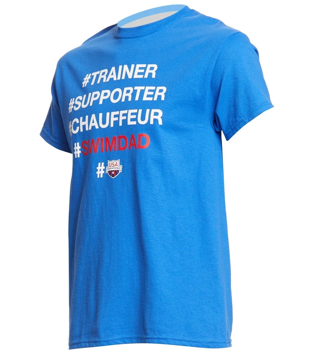Get hashtagged out in the USA Swimming Men’s #Swim Dad Crew Neck T-Shirt. This tee is uniquely designed with hashtags meant to support the passionate swimmers in your family.