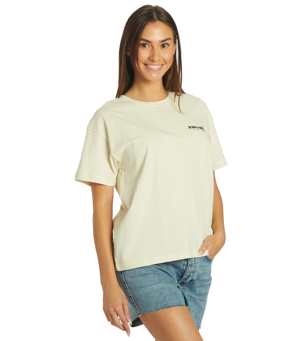 The Rip Curl Women’s Fields Of Dreams Relaxed Tee features prints on both sides and a soft wash feel.