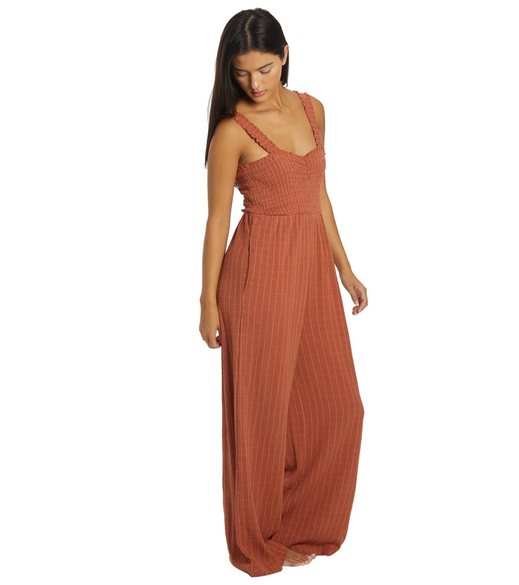 Take on summer adventures with the Roxy Women’s Adventure Bound Jumpsuit crafted from tri-blend crinkle dobby fabric for lightweight texture. The figure-hugging smocking accentuates your figure for a flattering fit, while the fixed straps ensure security and comfort.