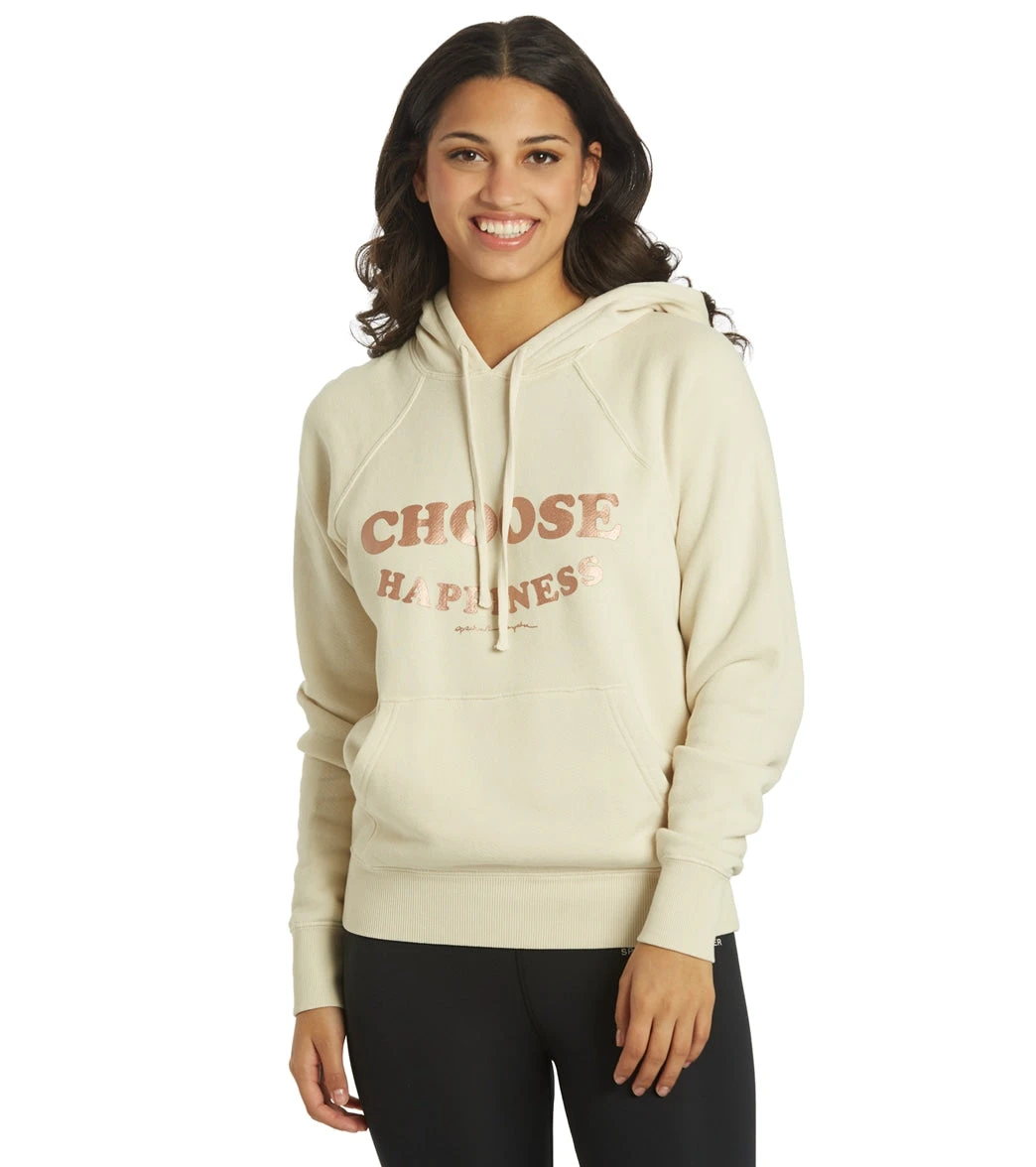- : Classic hoodie. Kangaroo pocket. Raglan sleeves. Relaxed fit. Slouchy hood. Rib cuffs and hem. ”Choose Happiness” graphic.