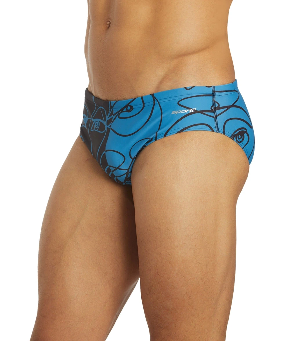 The Sporti x aLILscribble collection is a part of the Sporti Artist Series, a limited edition collection aimed to spark conversation around diversity, inclusion, and mental health awareness in and out of the water. The Sporti x aLILscribble Limited Edition Divide Brief Swimsuit is a one-of-a-kind print with seemingly endless faces.