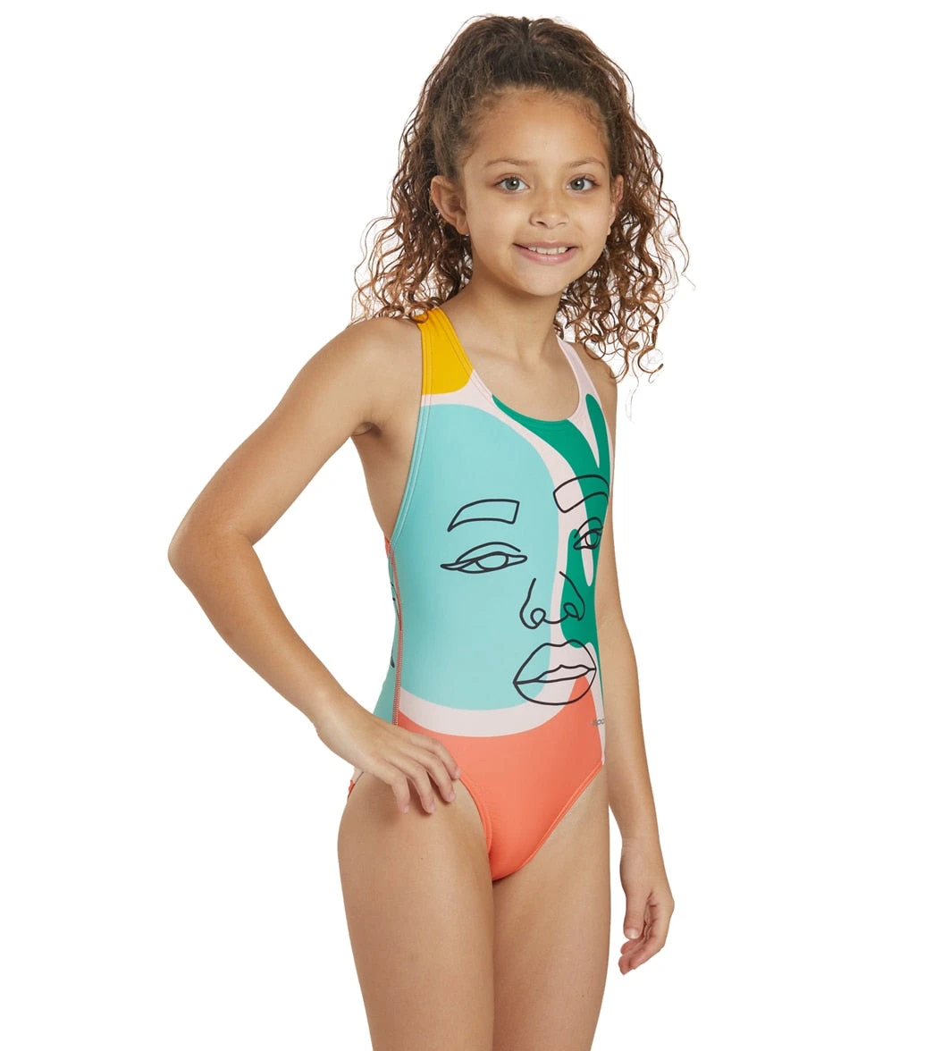 The Sporti x aLILscribble collection is a part of the Sporti Artist Series, a limited edition collection aimed to spark conversation around diversity, inclusion, and mental health awareness in and out of the water. The Sporti x aLILscribble Limited Edition Summer Heat Wide Strap Cross Back One Piece Swimsuit Youth (22-28) features a signature face sketch with colors to complement any skin tone.Â
