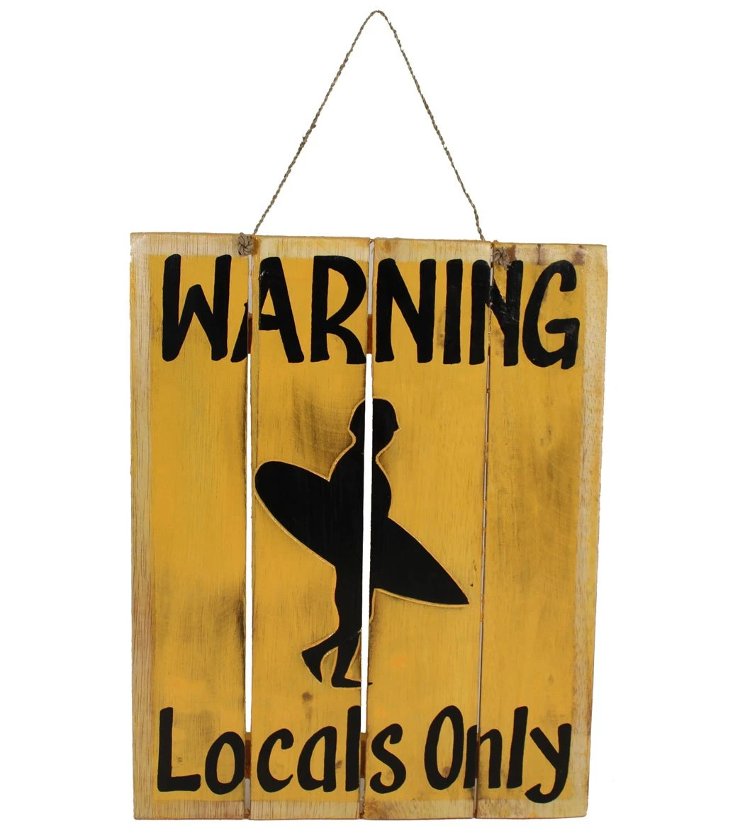 Make your home feel like you’re still on vacation with the Wet Products Warning Locals Only Wood Slat Sign 12″x16″.