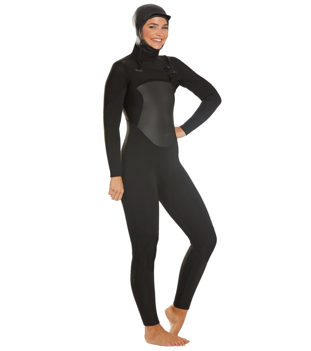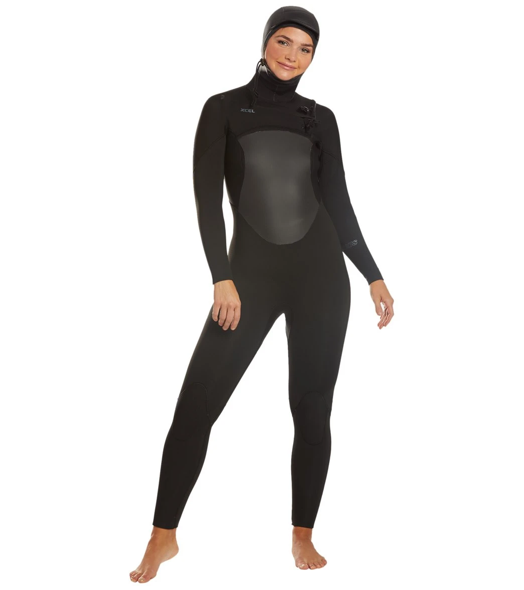 Swim through the cold waters in the Xcel Women’s Axis Hooded 5/4mm Fullsuit Wetsuit.